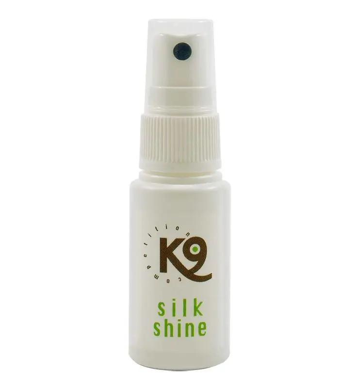 K9 Competition silkesdroppar ger glans och lyster till alla sorters pälsar. Motverkar statisk elektricitet och kluvna hårtoppar. Gnid ut en liten droppe i handflatan så den värms och dra genom eller på pälsen för önskad effekt. Ger även torr och livlös päls en underbar lyster och silkeslen känsla.