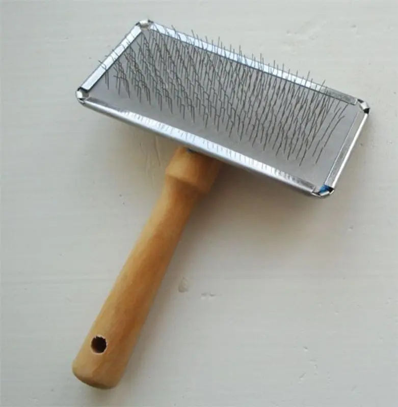 Mjuk karda med trähandtag som tar bort fälld och glanslös päls. Kan användas på både kort- och långhåriga katter med bra resultat. Trähandtaget ligger bra i handen vid borstning, riktigt smidig att använda.