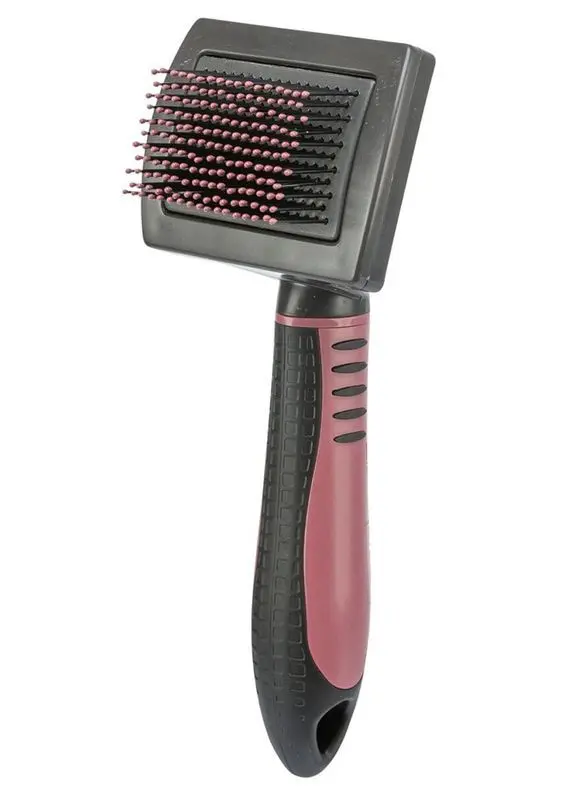 Extra mjuk karda med täta borst med rosa "nubs" längst ut på varje pinne - som gör kardningen extra behaglig för din katt. Denna karda håller den översta pälsen tovfri och glansig på din katt, perfekt för mys och vardagsborstning i soffan på kvällarna.
