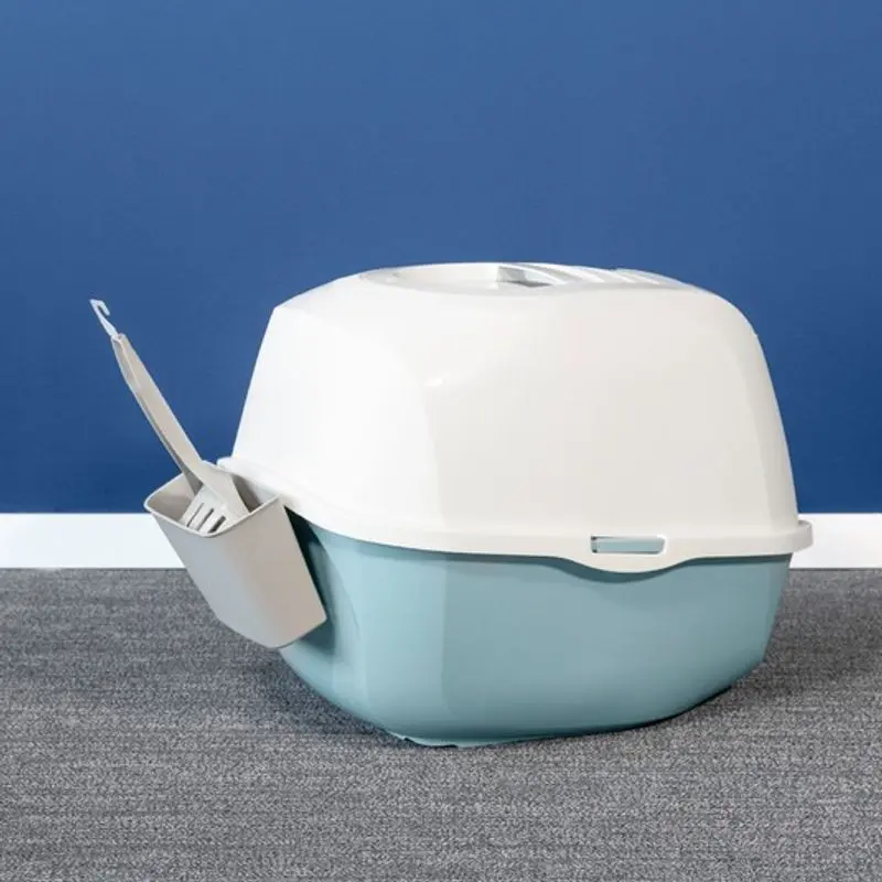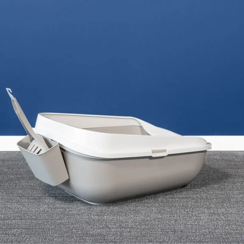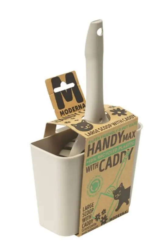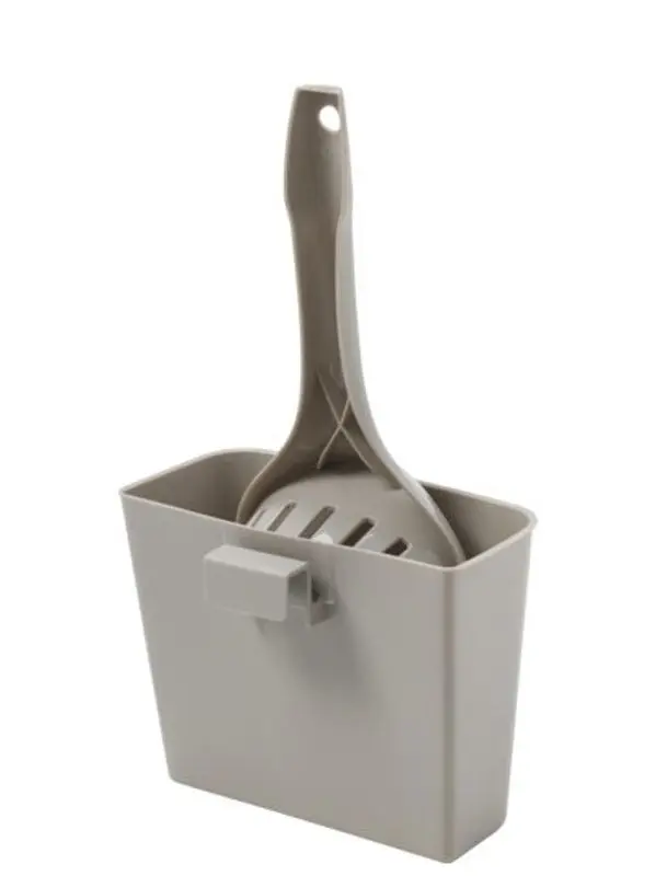 Praktisk kattspade till kattlådan, med hållare. På baksidan av hållaren finns en krok, som du kan häkta fast baktill på flera olika modeller av kattlådor. Spade med egen hållare gör rengöringen av kattlådan riktigt praktisk och enkel.