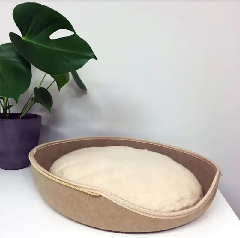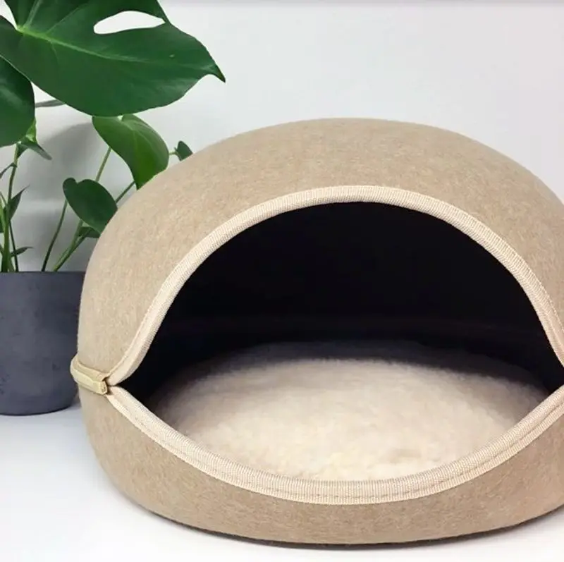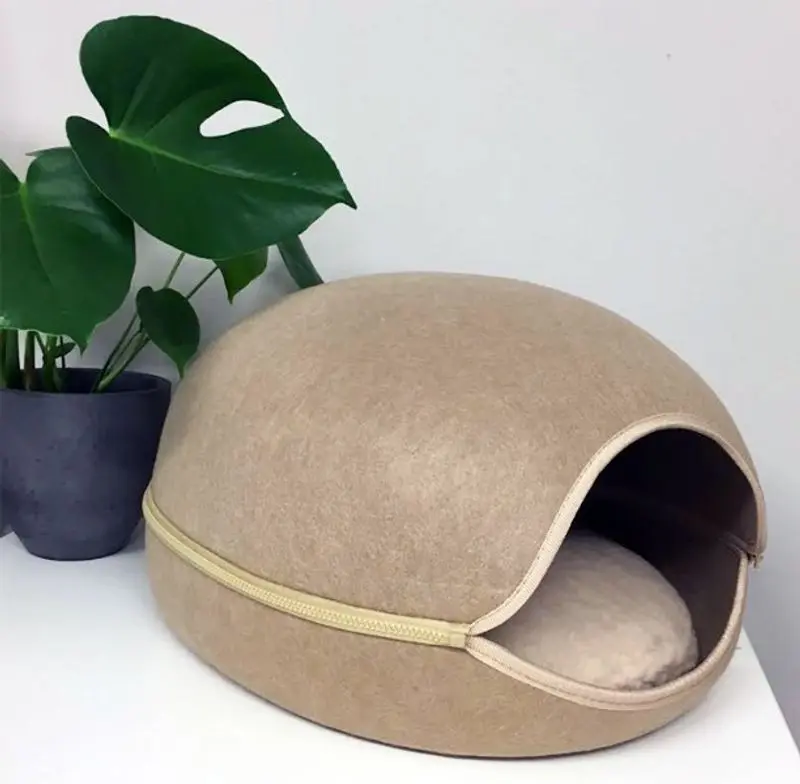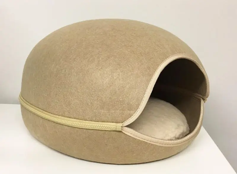 Stor och härlig kattsäng i beige filtad look. Igloon kan delas av med en dragkedja och användas hel som en igloo eller med enbart underdelen som en snygg kattsäng.