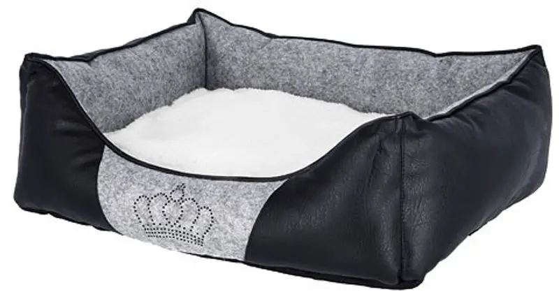Klassisk snygg fyrkantsbädd i svart och grå färg till din katt. Bädden är riktigt mjuk och mysig med höga kanter, perfekt för katten som gillar att gosa ner sig ordentligt och rulla ihop sig när den sover.