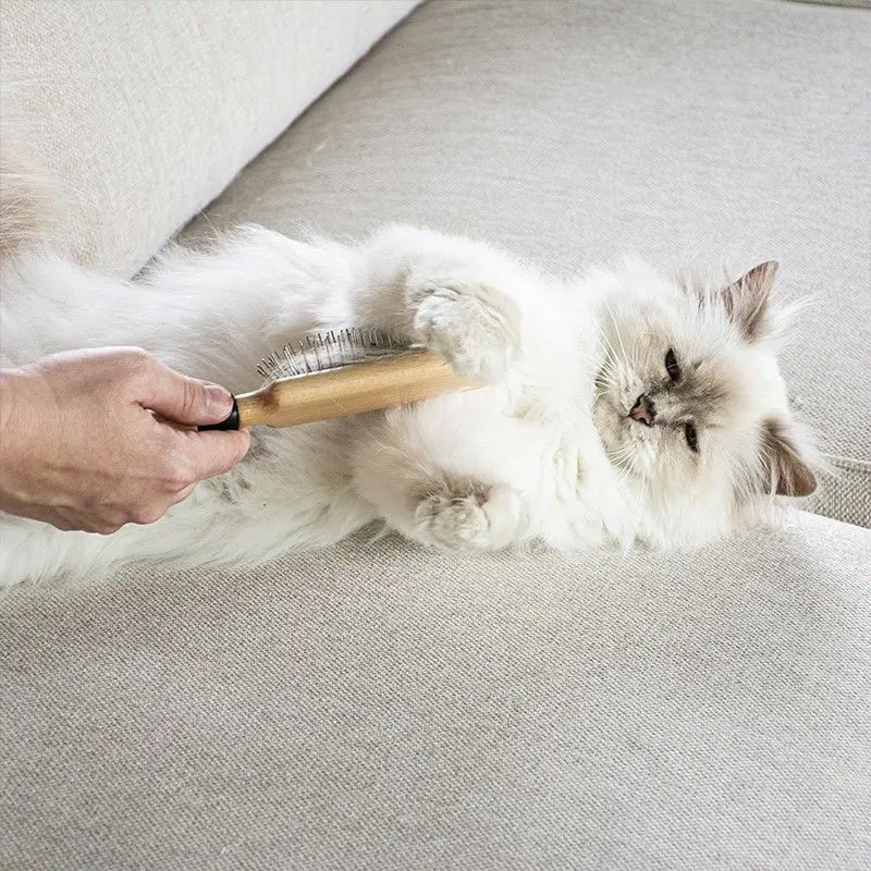 Denna borste används till vardaglig pälsvård, för att reda ut päls och lösa upp lätta tovor. Låt gärna borsten ligga framme så att den är lätt att använda, kanske vid soffbordet om du och din katt ofta hänger tillsammans i soffan på kvällarna. (Komplettera gärna med en utredande spray t ex vår favorit NanoMist).