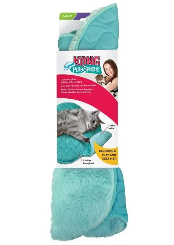 Kattdyna Kong Cat Cloud Spaces har lite prasslig fyllning - crinkles, och kattmyntafyllning inuti ger aromterapi.