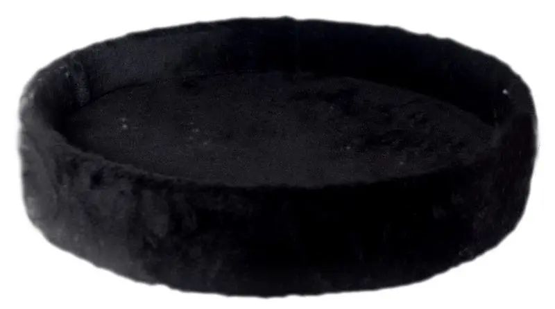 Hylla utan kant i 3 olika storlekar, svart plyschtyg både ovantill och under botten på hyllan. Rund hylla med förborrat hål som passar till alla klösträd från märket Kattens No.1