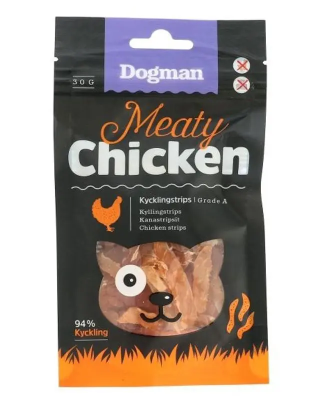 Smakfulla kyckling-strips till din katt med 94% kycklingkött. Mjukt och naturligt kattgodis till din kisse. Perfekt som extra god belöning.