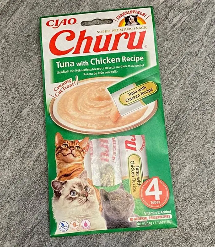 Churu Creamy är tillverkade av vildfångad tonfisk och gårdsuppfödd kyckling. Churu Creamy finns i 5 läckra smaker om din katt gillar ombyte! Riv helt enkelt upp en tub och pressa lite på den för att servera kattgodiset till din katt. Churu tillverkas med ingredienser av livsmedelsgodkänd råvara.