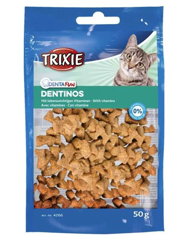 Knapriga små kattgodisar vars form och textur bidrar till att rengöra tänder och tänders mellanrum. Dentinos har extra tillsatta vitaminer.