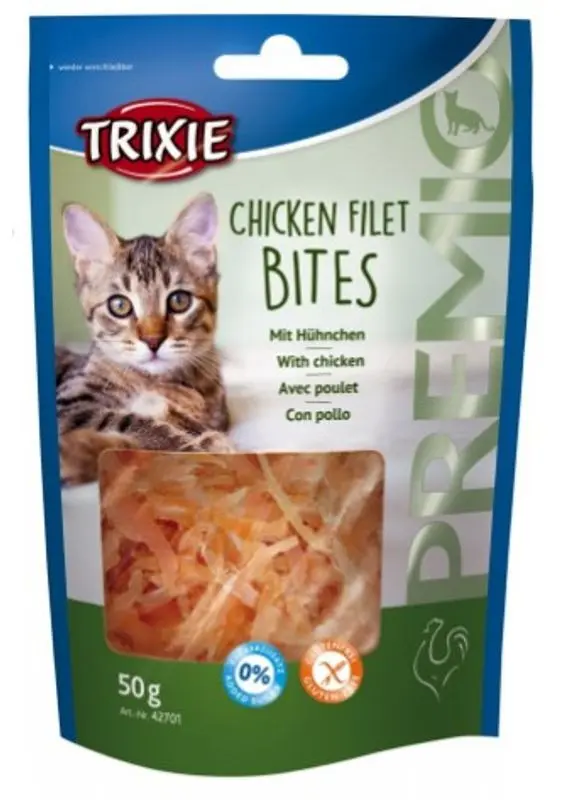 Smaskiga stripes med kyckling, 72% köttinnehåll. Återförslutningsbar påse som håller kattgodiset fräsht.