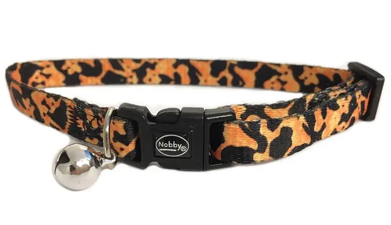 Detta snygga katthalsband till din katt har ställbar storlek och ett safetyknäppe som går upp om katten skulle fastna utomhus med halsbandet.