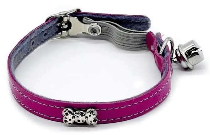 Riktigt fint lila läderhalsband med en diskret rosett i metall, till den stilrena kissen.