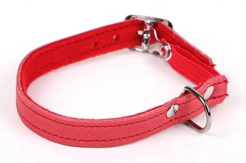 Riktigt fint rött läderhalsband i mjukt läder, med filtad baksida för extra komfort. Halsbandet har bältesspänne och en töjbar resårdel, så att katten ska kunna komma ur halsbandet om den fastnar.