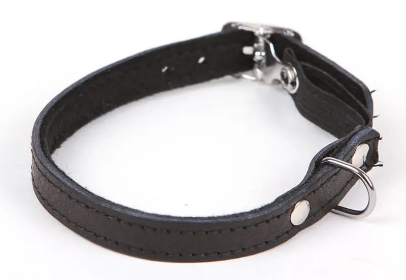 Enkelt och stilrent svart läderhalsband i mjukt läder, med filtad baksida för extra komfort. Halsbandet har bältesspänne och en töjbar resårdel, så att katten ska kunna komma ur halsbandet om den fastnar.