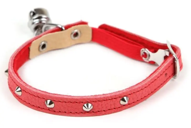 Katthalsband i klassisk design till din katt, rött läderhalsband med dekornitar.