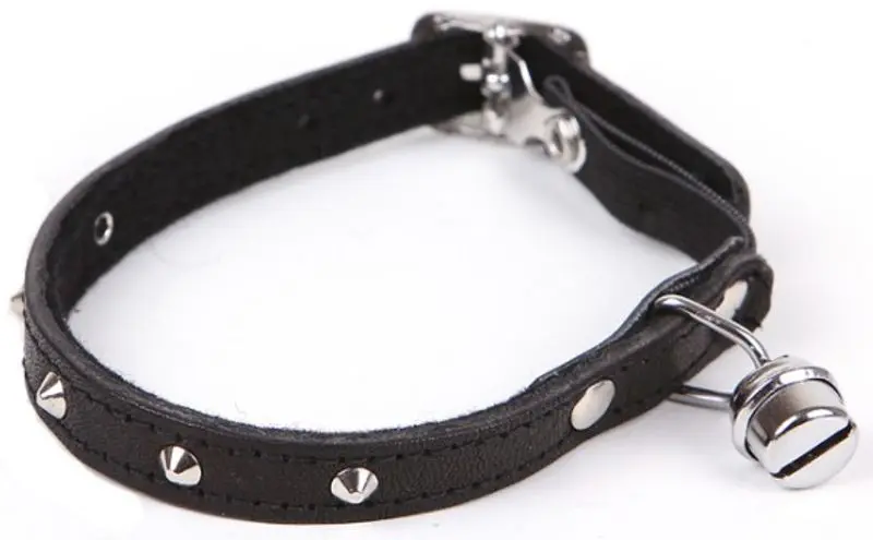 Katthalsband i klassisk design till din katt, svart läderhalsband med dekornitar. Halsbandet har en töjbar resårdel så att katten ska kunna komma ur halsbandet om den fastnar. Katthalsbandet har även en pingla som självklart går att knipsa bort om man vill - för kattens skull.