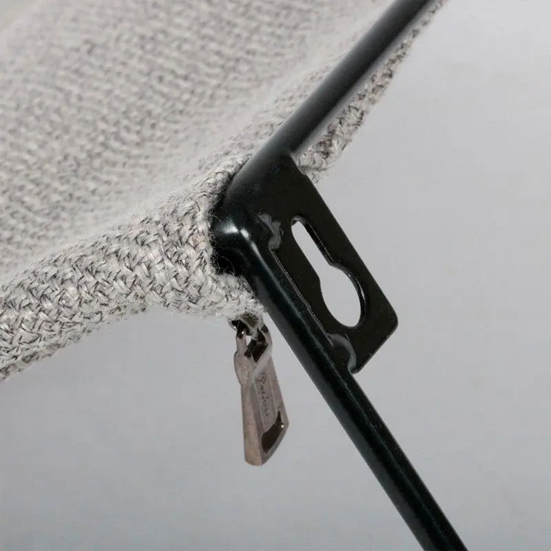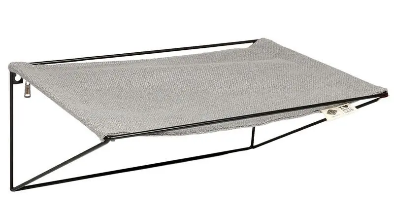 Hängmattan är gjord av ett snyggt inredningstyg och kan fästas på ramen med dragkedjor (tyget har en maxvikt på ca 10 kg). Trevligt tips! Att använda väggar för att ge dina katters sovplatser är så givande och ger dina katter en chans att kunna röra sig på en större yta och därmed få ett större revir.