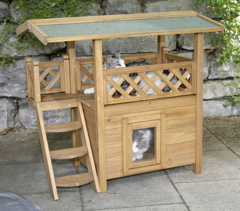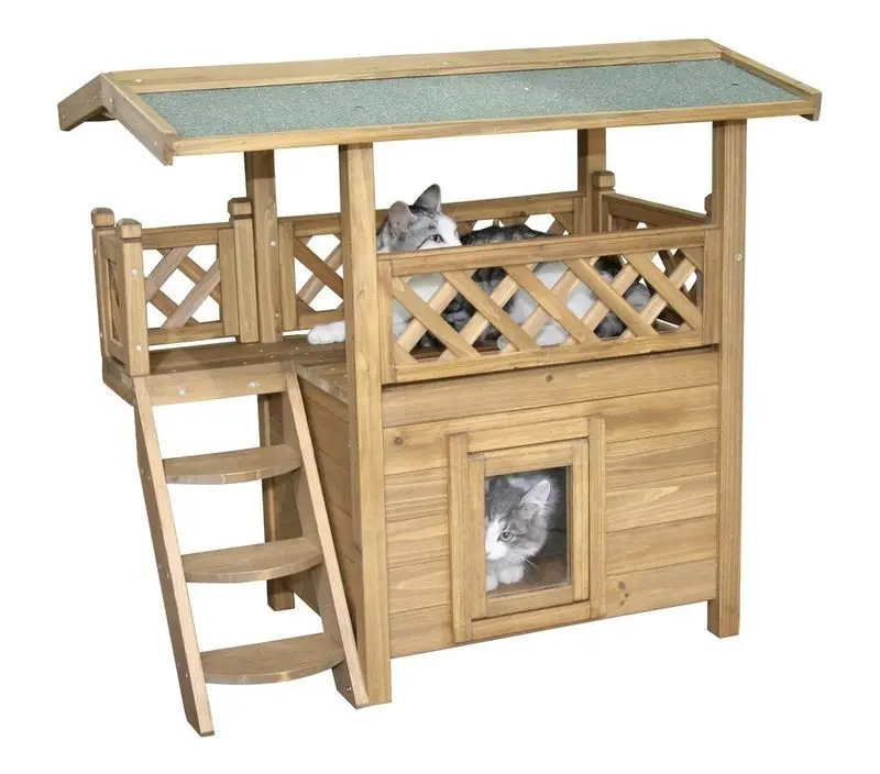 Din katt kan vila inuti sitt hus och den kan ligga och spana från sin "takterass" där katten har skugga under dagen eller skydd för regn.