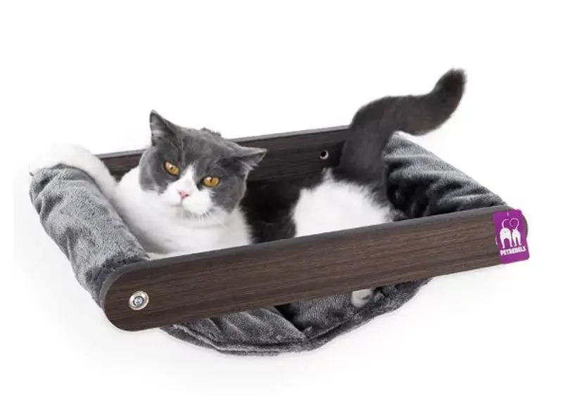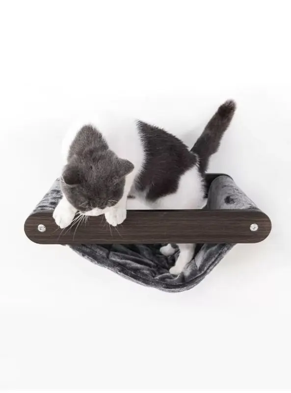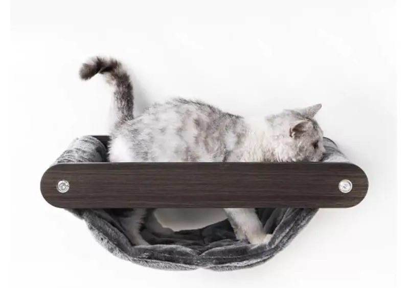 Gör din katt riktigt nöjd med denna lyxiga hängmatta i mörk wengé-stil och mjuk grå plysch. Perfekt för vila, återhämtning – och för att se snygg ut i hemmet! Hängmattan kommer från vår Wall of Rebels-kollektion, skapad för att ge katter möjlighet att sova, leka, klättra, springa och klösa på ett kreativt sätt.