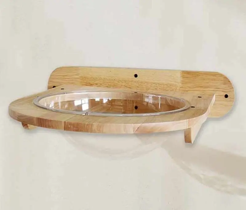 Denna katthyllas tokrolighet är att den är genomskinlig. Otaliga är de foton du kommer ha i din mobiltelefon på denna hylla underifrån när din katt rullat ihop sig och tassarna och trampdynorna syns genom skålen. Det är så gulligt så man går upp i sömmarna.