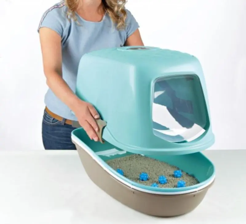 En kattlåda med 3 bottnar och sil gör rensningen av kattlådan till en snabb och enkel procedur. Snygg kattlåda i grå färger.