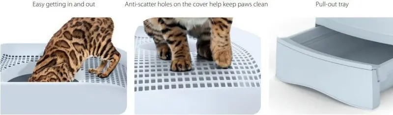 Locket har smarta hål som hjälper till att fånga upp kattsanden från tassarna när katten kliver ut - mindre sand utanför lådan och renare golv för dig. Mindre utsprätt sand - Less mess!