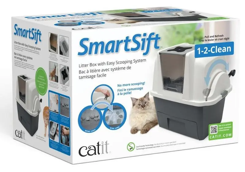 Smartsift kattlåda är en innovativ och smart kattlåda som underlättar den dagliga rengöringen av din kattlåda. Denna kattlåda har sålts i ett par olika versioner de senaste åren, produktbild nr 1 är den som överenstämmer med nuvarande design och färg.