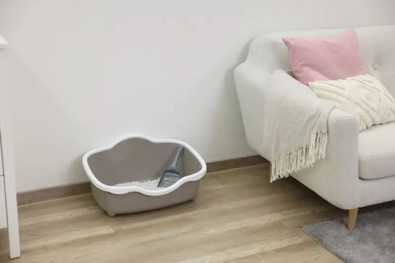 Kattlåda Très Chic open är en fin kattlåda i beige/vit färg. Denna kattlåda är lite annorlunda designad med insteget "på bredsidan" framtill - istället för hur kattlådor brukar vara (med ingång på kortsidan). Här är det tänkt att du ställer bakkanten mot väggen och att katten kliver in via den breda sidan framifrån. Kattlådan har gott om svängrum, perfekt för den katt som föredrar en helt öppen kattlåda.