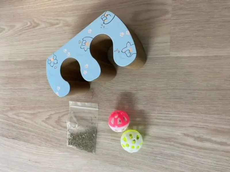 Den är tillverkad av miljövänlig papp och fungerar både som bollbana och klösleksak. Medföljer gör 2 st bollar samt kattmynta!