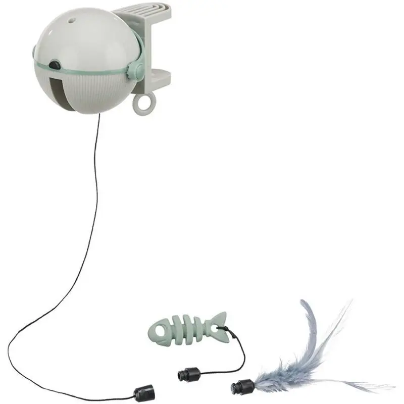 Catch-It kattleksak är en batteridriven kattleksak som kan sättas fast på valfritt klösträd, stol, bordsskiva eller t ex en fönsterbräda. Catch-It fästs med en klämma.2 snören med 2 olika hängen medföljer: