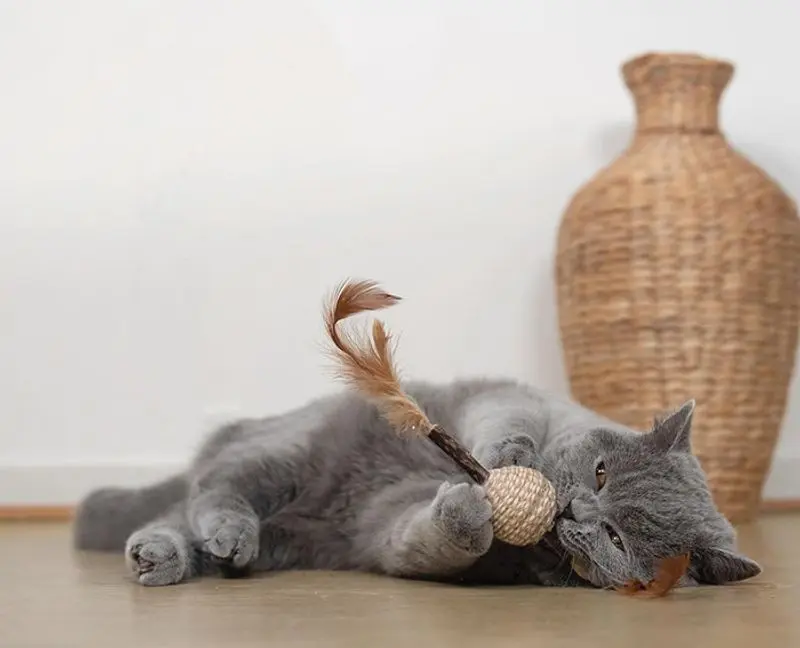 Kattleksak med Matatabi och fjädrar, väldigt lockande för din katt! Skaftet på leksaken är av 100% matabi som bidrar till en bra munhygien hos din katt, de flesta katter älskar att gnana på Matabi! Kattleksaken har även en boll med skaller inuti samt roliga fjädrar.