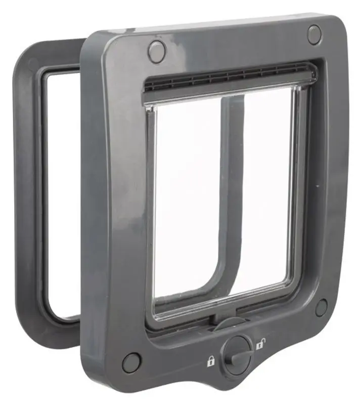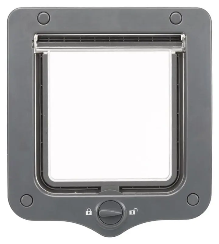 Klassisk kattlucka med in och utgång, så kallad 2-vägs kattlucka. Tillverkad i plast med en mjukstängande, transparant svänglucka. Kattluckan har TPR-gummi som list runt hela öppningen, samt ett magnetlås som gör att svängluckan inte slår i vinden.