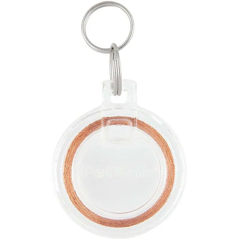 Microchipnyckeln är i storlek med en kapsyl och behöver inga batterier. Inklusive nyckelring för att fästa chipnyckel i katthalsbandet. Genomskinlig nyckel med innerring i koppar.