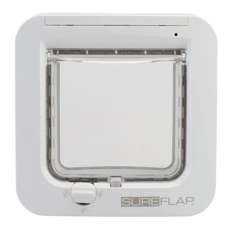 Sureflap är en kattlucka med microchipläsare på utsidan, den öppnar sig alltså bara för de katter som bor i hushållet och håller alltså främmande katter och t ex igelkottar på rätt sida kattluckan - utomhus!