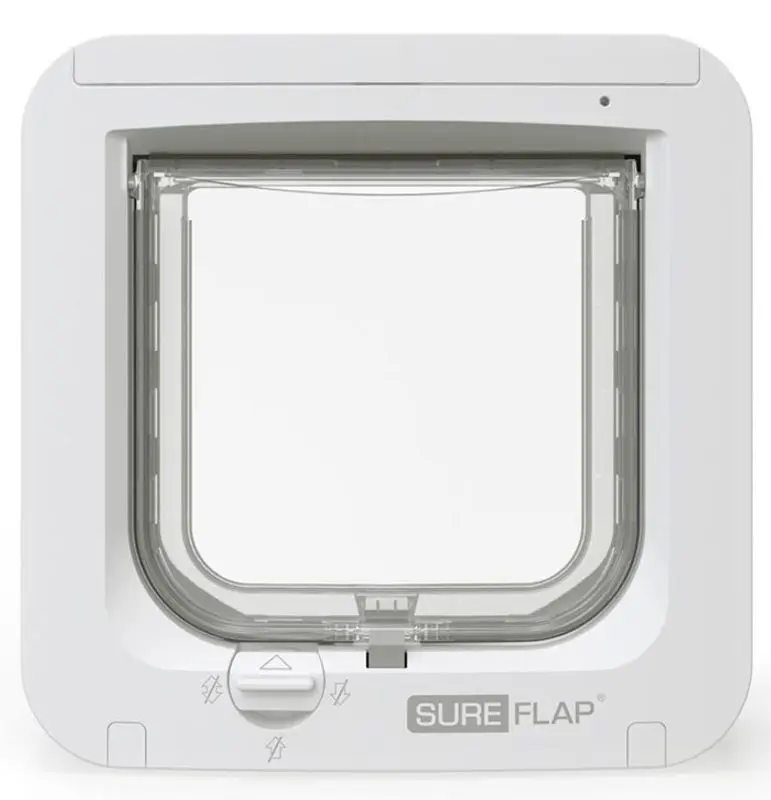 Sureflap är en kattlucka med microchipläsare på utsidan, den öppnar sig alltså bara för de katter som bor i hushållet och håller alltså främmande katter och t ex igelkottar på rätt sida kattluckan - utomhus!