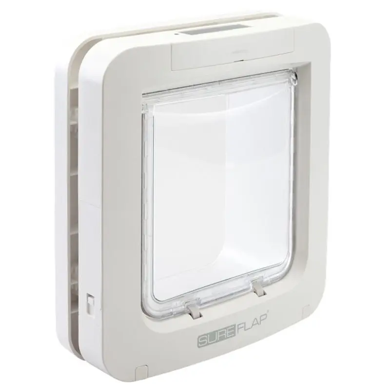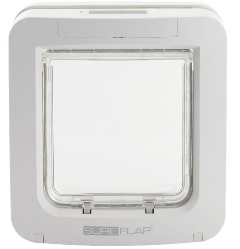 Sureflap är en kattlucka med microchipläsare på utsidan, den öppnar sig alltså bara för de katter som bor i hushållet och håller alltså främmande katter och t ex igelkottar på rätt sida kattluckan - utomhus!