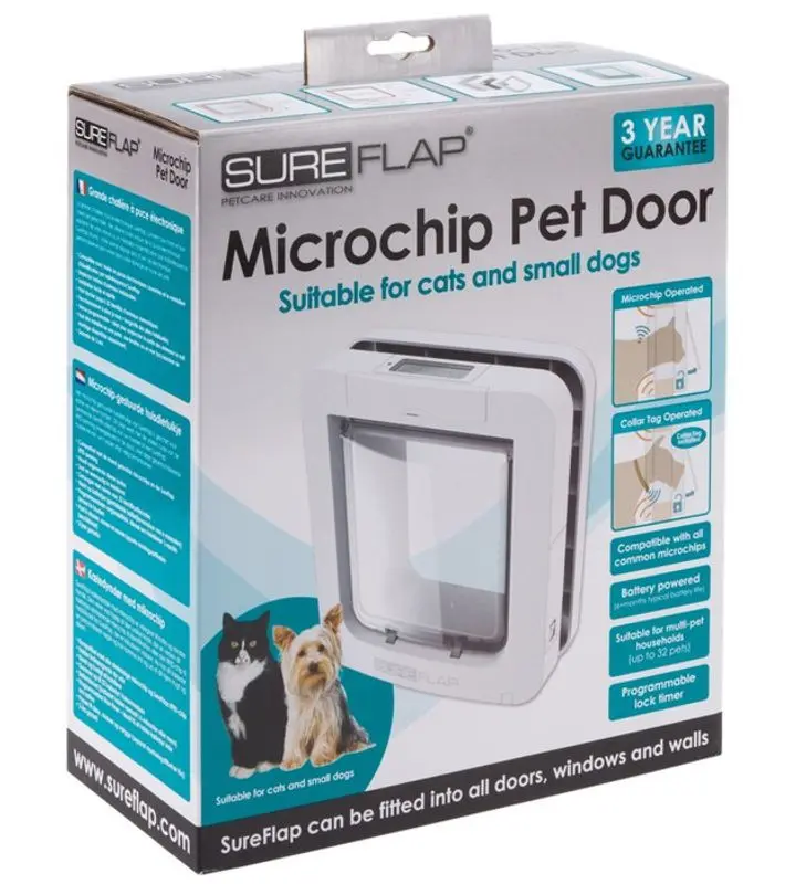Sureflap läser 15-siffriga, 10- och 9-siffriga chipkoder och håller alla programmerade chipkoder i minnet även vid strömavbrott. Kattluckan kan programmeras för 32 olika microchipkoder!