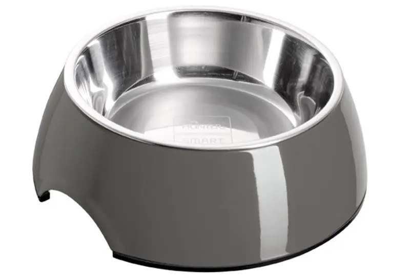 Först en snygg enfärgad skål och i denna finns en skål i tåligt rostfritt stål. Går att använda som en eller två skålar, det är även lätt att bara lyfta ur insatsskålen för en omgång i diskmaskinen