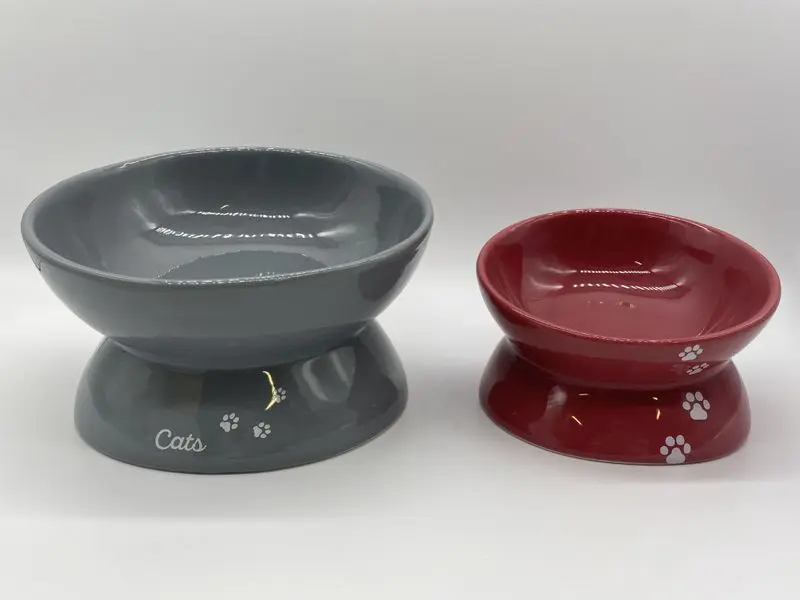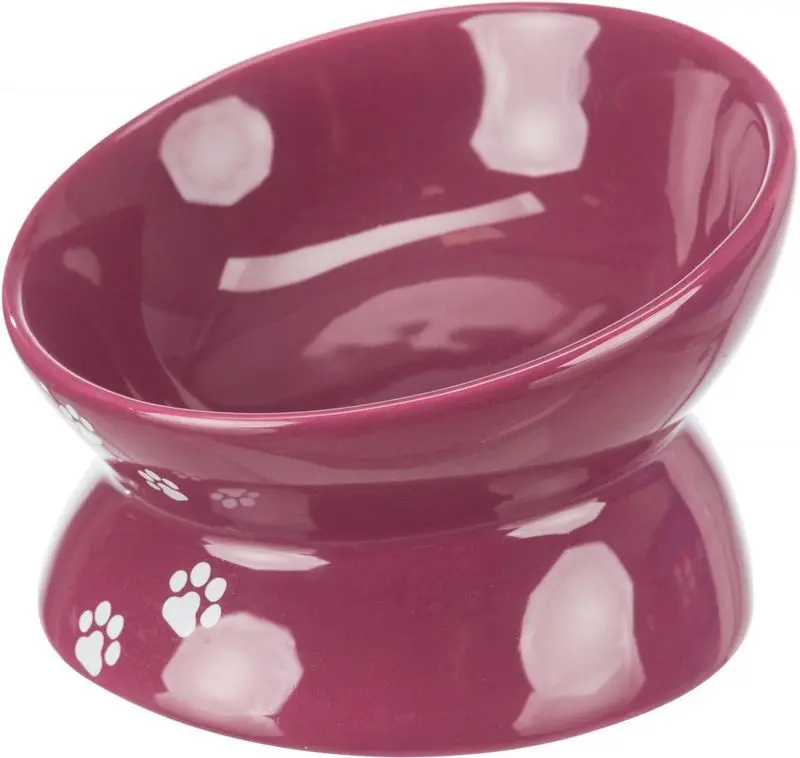 Snygg hallonrosa keramikmatskål i ergonomisk design. En perfekt kattmatskål för dig som exempelvis har en äldre katt med ryggproblem eller artros i skuldror eller leder och som hellre vill äta ur en lite högre matskål.