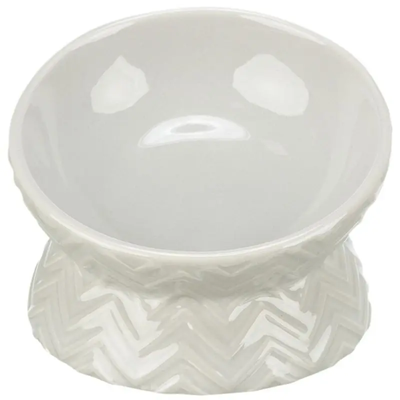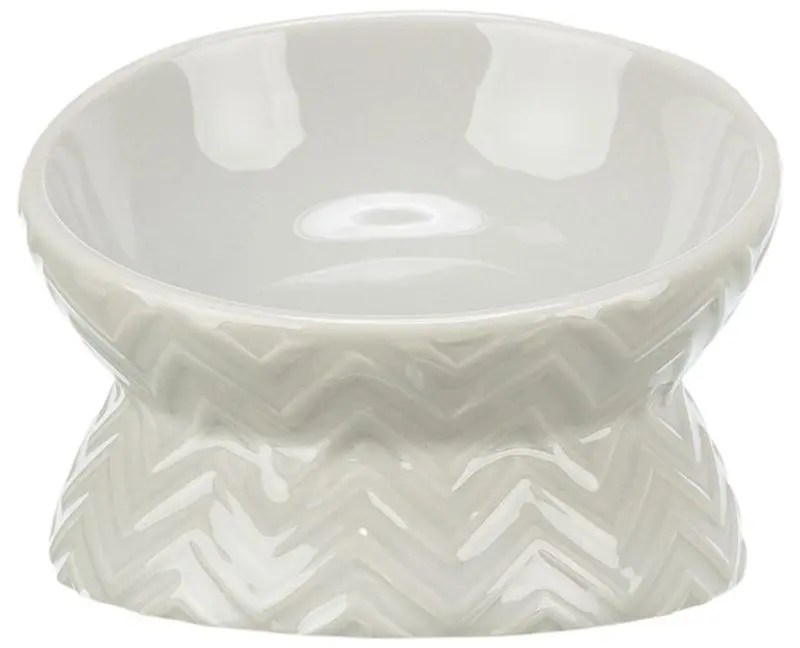 Superfin ljusgrå kattmatskål i keramik i ergonomisk design. En ny piffig version med strukturerad utsida!