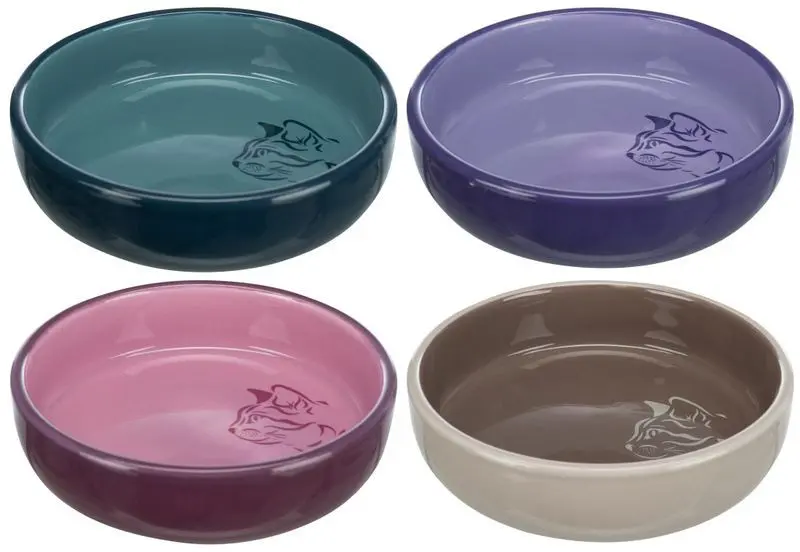 Kattmatskålar i keramik i 4 fina färger från märket Trixie. Matskålar tillverkade med kattens känsliga morrhår i åtanke och därmed har skålarna en bekvämare, bredare botten och en lägre kant.