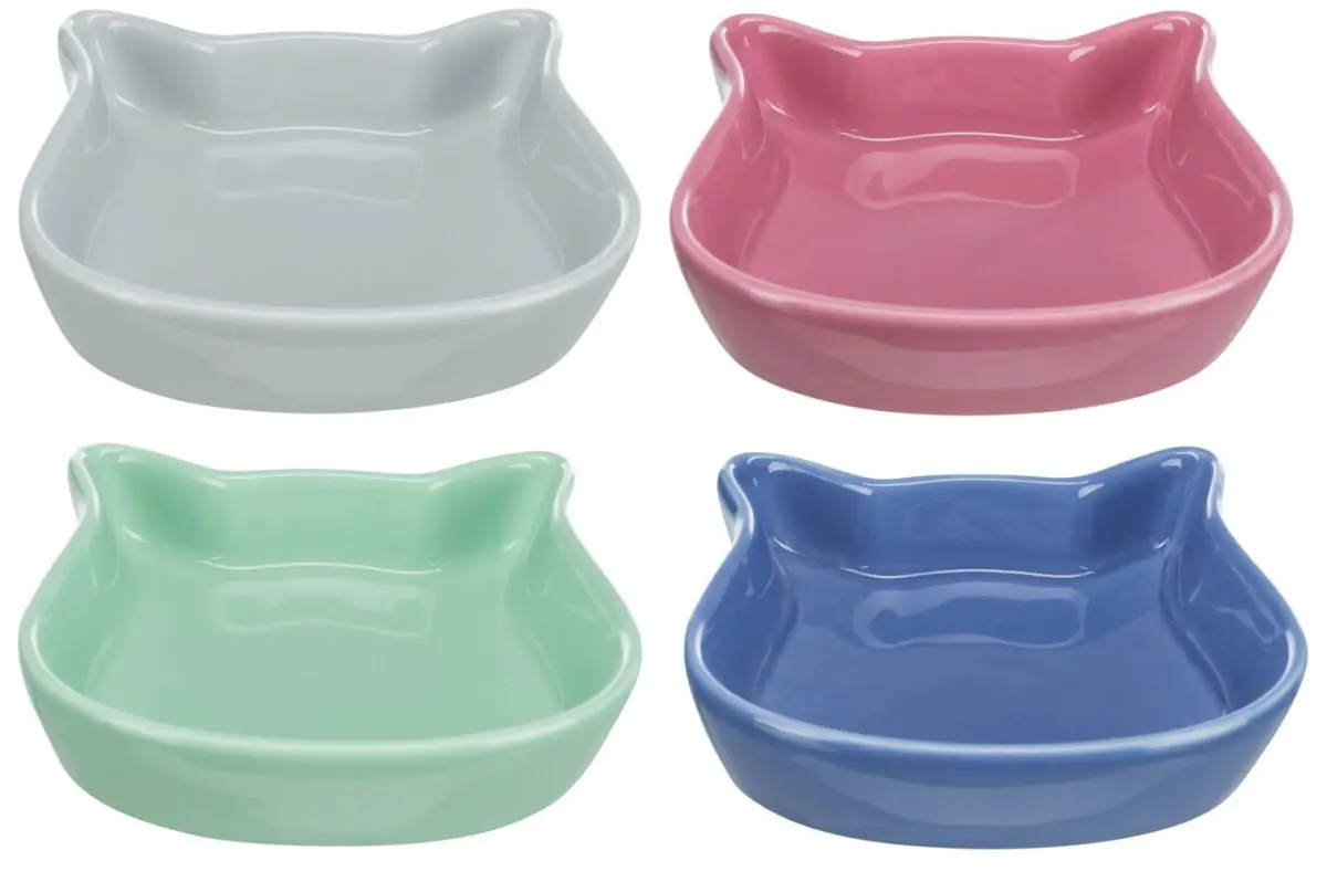 Kattmatskål med siluetten av ett katthuvud med öron, matskålen har en bra storlek med låga kanter och är diskmaskinssäker.