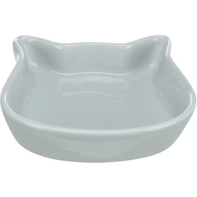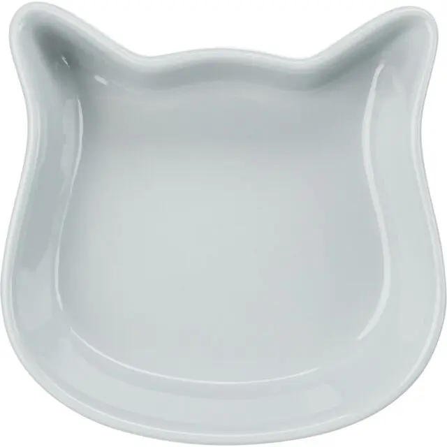 Kattmatskål med siluetten av ett katthuvud med öron, matskålen har en bra storlek med låga kanter och är diskmaskinssäker.