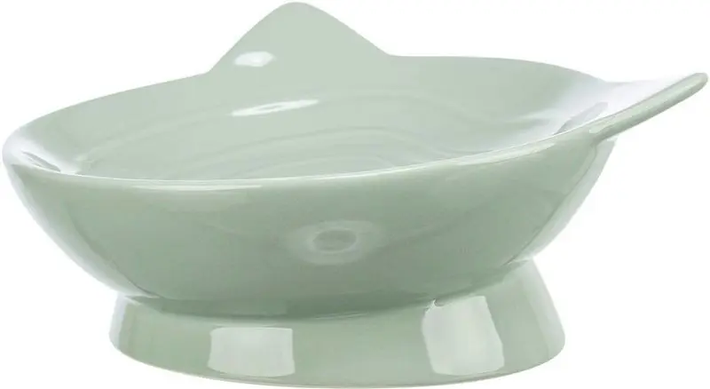 Fin kattmatskål i färgen sage green med ergonomisk design. Skålen är upphöjd och har en viss lutning - passande för en äldre katt med ryggproblem eller artros i skuldror eller leder, och som gärna äter ur en lite högre matskål.