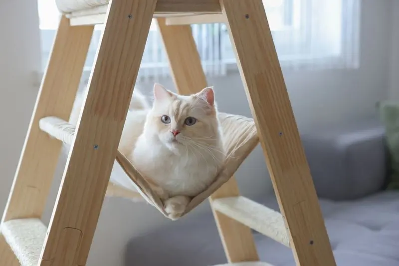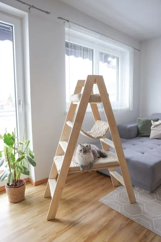 Cat Tree Ladder från varumärket Kerbl är en kattmöbel med både sovplats och hängmatta. Väldigt fin i hemmet och en kul lekplats för din katt. Passar de flesta inredningar med ljust trä och beiga liggdynor.