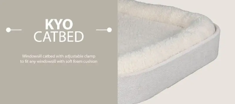 KYO kattsäng för fönsterbräda är särskilt designad för kvalitet och komfort, med den justerbara fästklämman underlättas monteringen på olika fönsterbrädor. Dess smarta design skapar extra utrymme för din kisse, vilket ger din katt en perfekt plats för att koppla av och spana ut genom fönstret.