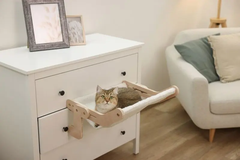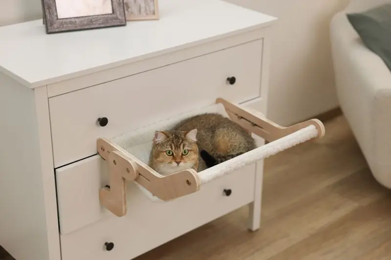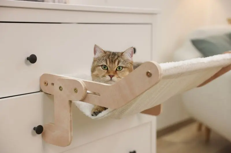 Hammock Nap är en mysig viloplats för din katt, utan att du behöver borra eller skruva i möblerna. Denna smarta katthängmatta monteras enkelt på exempelvis sängramar, byråer eller skåp, och ger katten en trygg och upphöjd plats att vila på - precis där den trivs bäst.