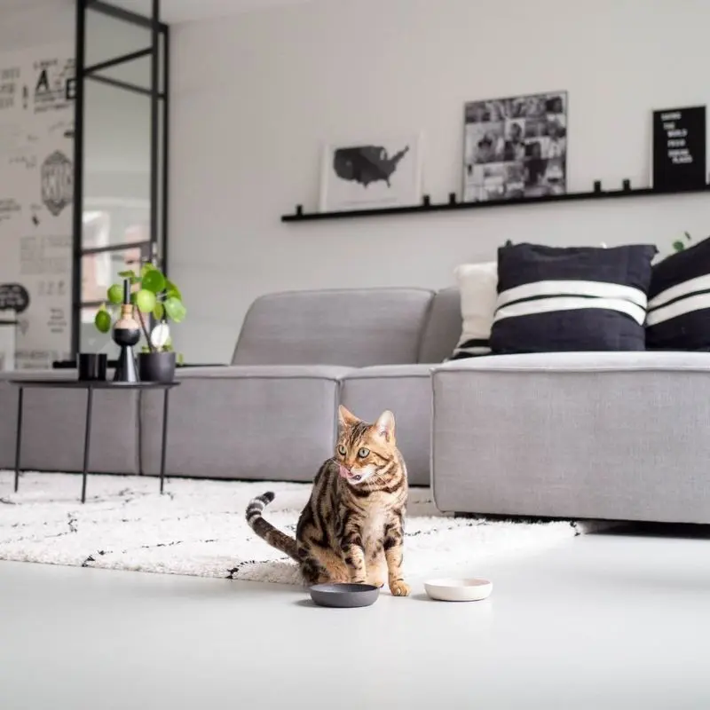 Fin och stilren kattmatskål tillverkad i hållbar bambu som passar perfekt in i det moderna hemmet!