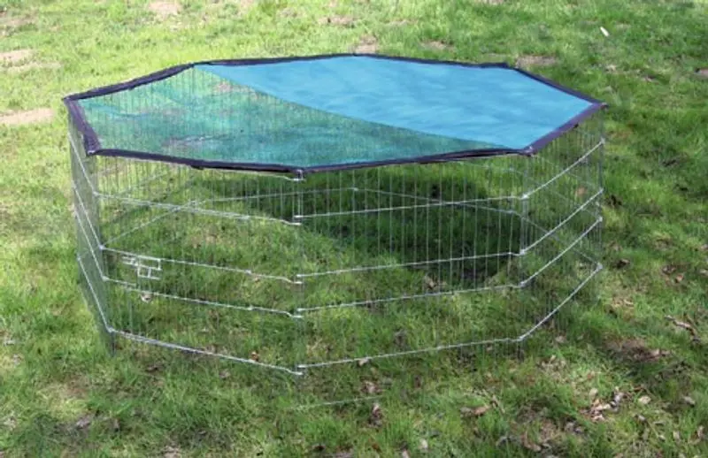 En stabil hage i metall med 8 separata delar som kan använda alla tillsammans med några för sig. Du kan själv välja hur många sidor du vill använda. Till hagen följer även ett nylontak som lätt kan tas av eller på om man vill använda det.