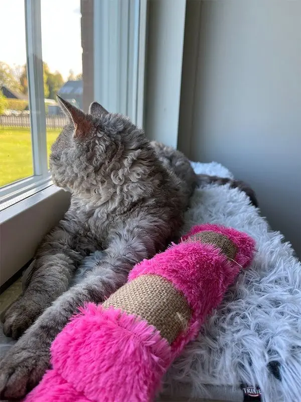 Leksaken är utformad för att främja brottning och sparkar med baktassarna. Den lilla svansen bidrar med extra rörelse för att trigga kattens lek!