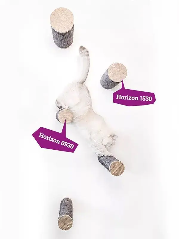 Skapa en stilren och funktionell kattvägg med Horizon 0930 i grå finish och sisal med grå färg. Setet innehåller tre väggmonterade steg som låter din katt klättra, leka och klösa. Perfekt komplement till övriga delar i Wall of Rebels-kollektionen, klättersteget gör att din katt kan klättra och hoppa mellan de olika vägg-modulerna.